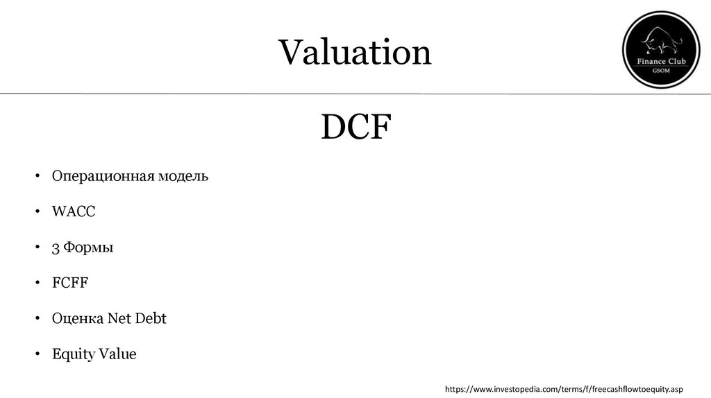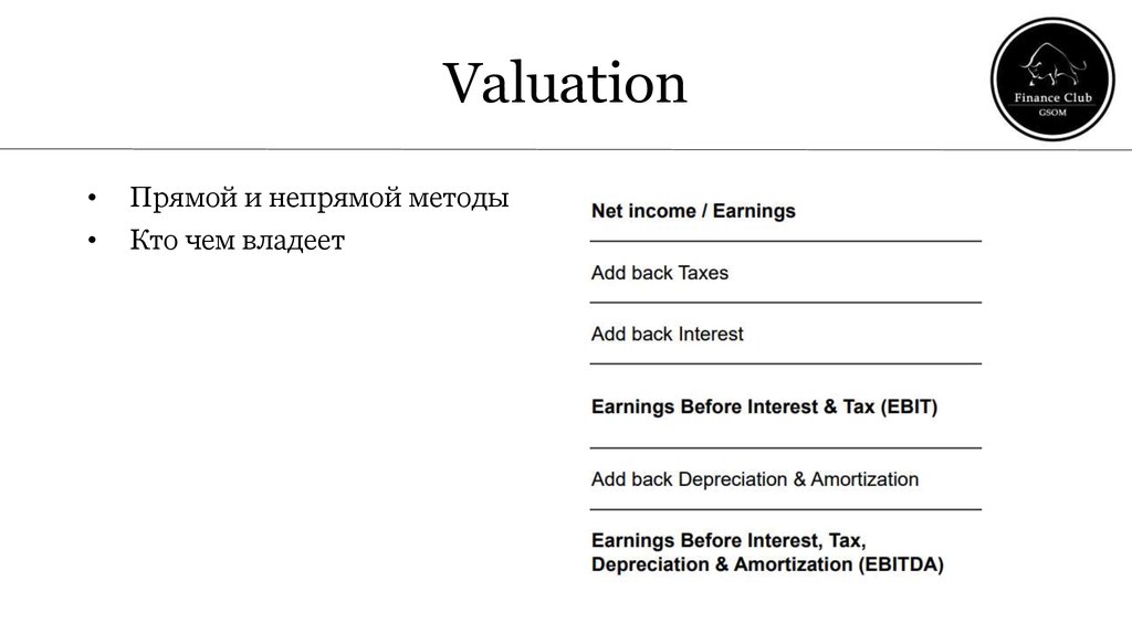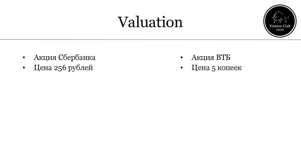 Valuation Финансовый клуб ВШМ