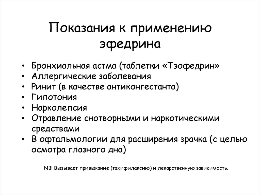 Показания к применениюэфедрина