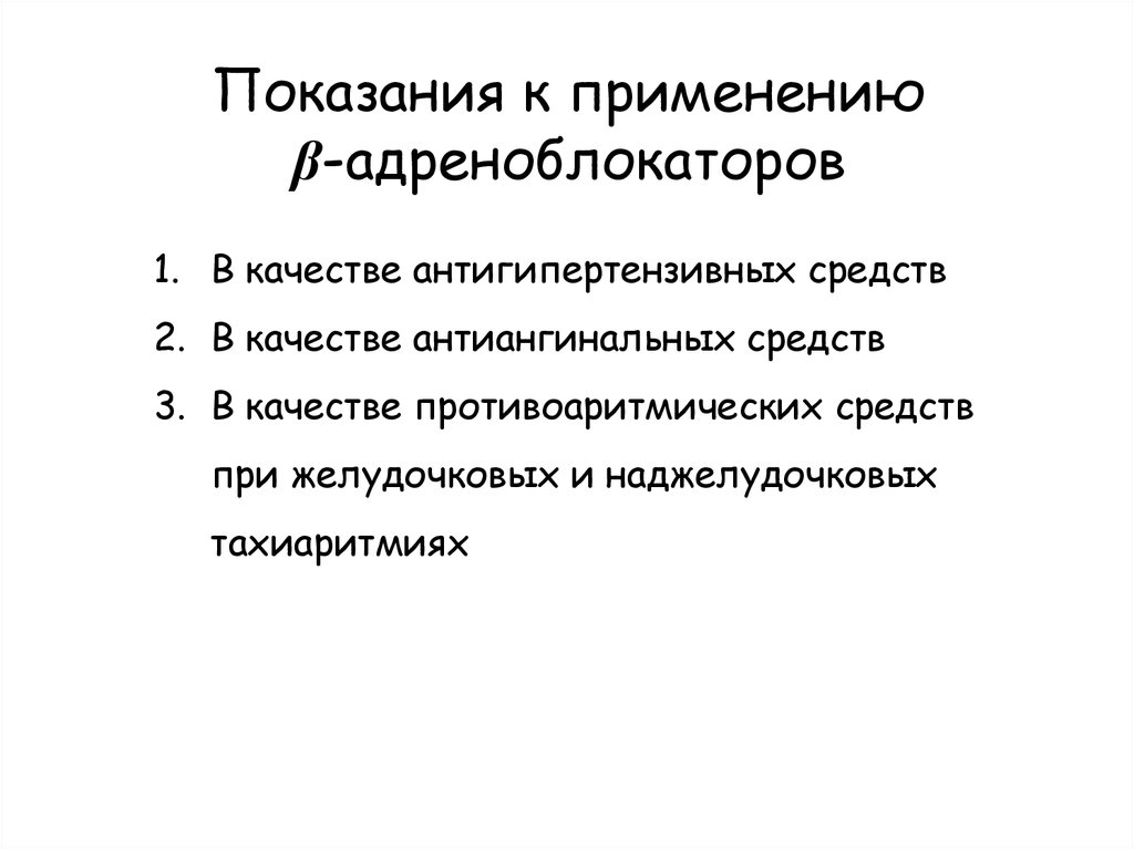 Показания к применениюβ-адреноблокаторов