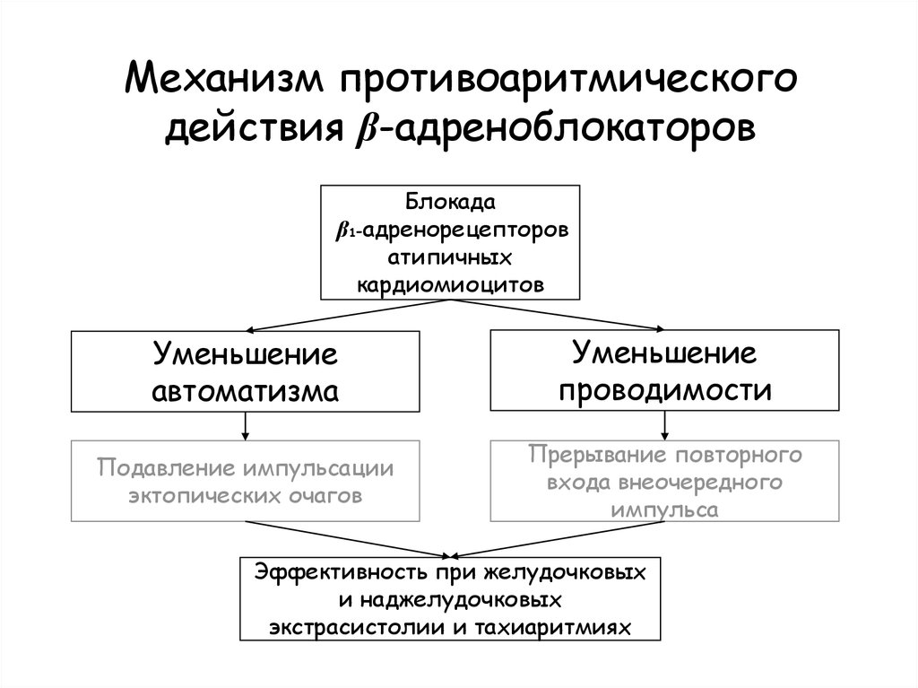 Механизм противоаритмическогодействия β-адреноблокаторов