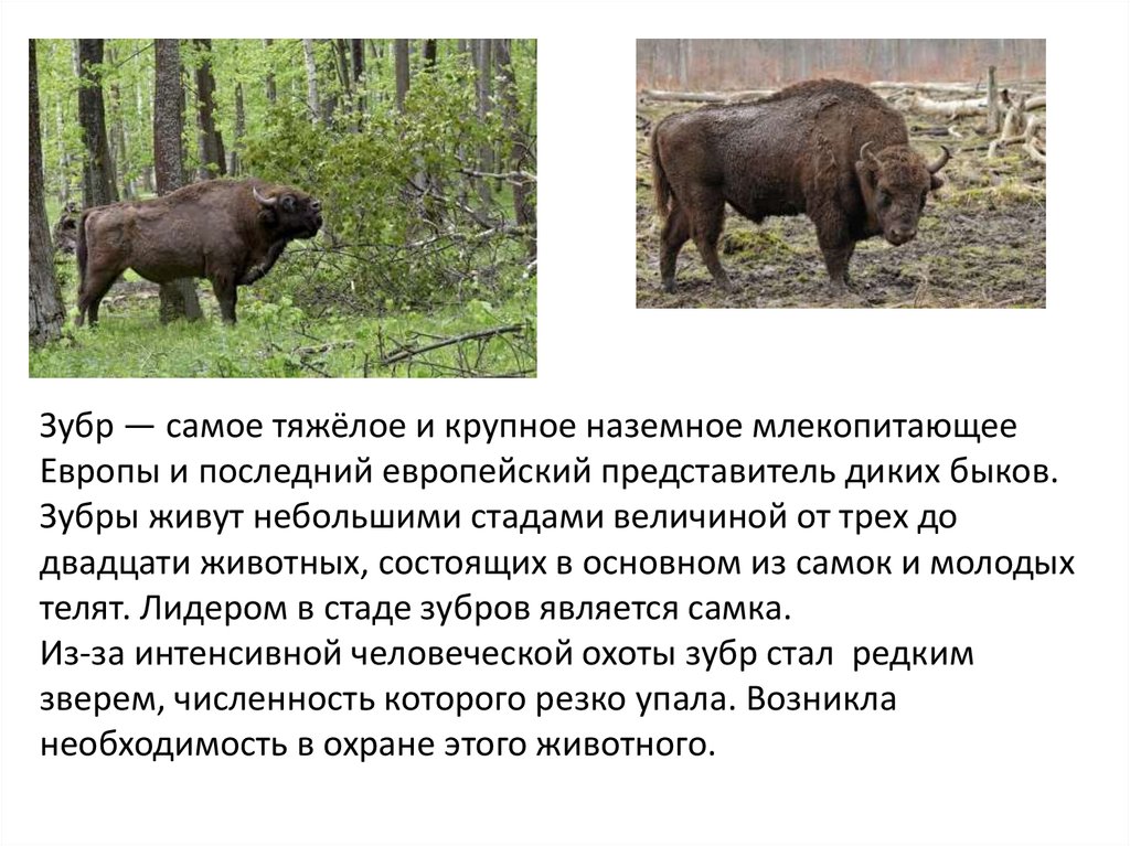 Зубр — самое тяжёлое и крупное наземное млекопитающееЕвропы и последний европейский представитель диких быков.