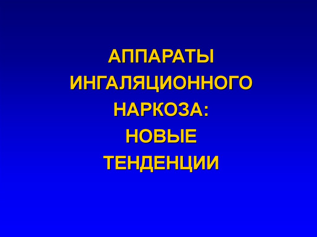 1. АППАРАТЫ ИНГАЛЯЦИОННОГО НАРКОЗА: НОВЫЕ ТЕНДЕНЦИИ
