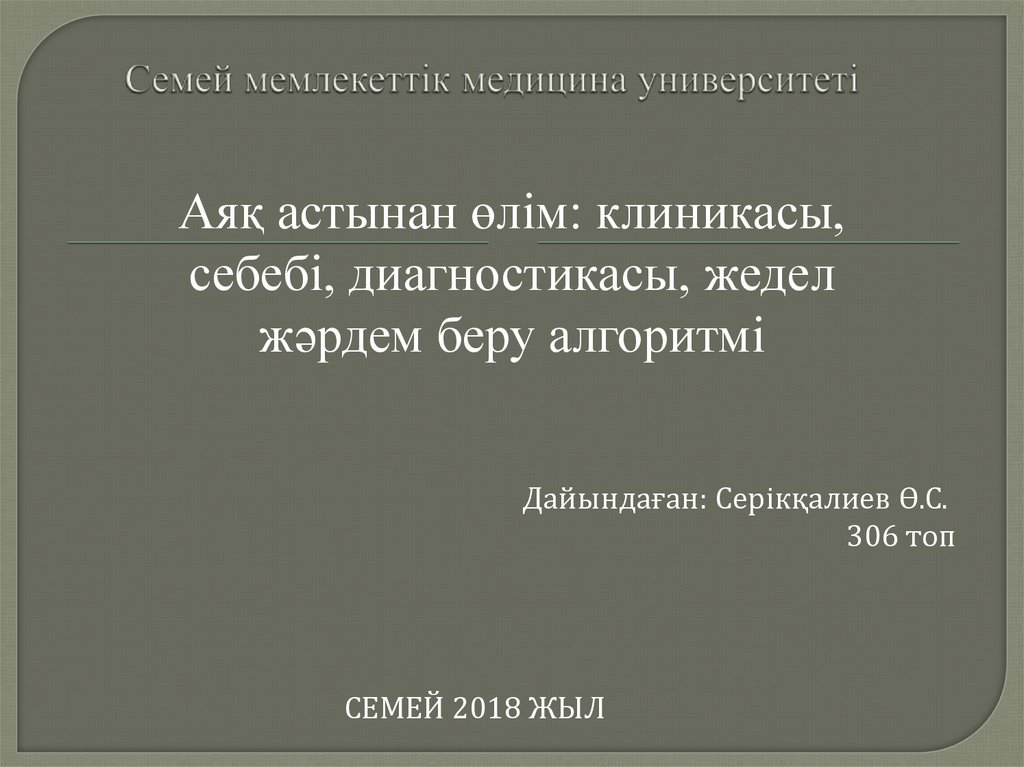 Аяқ астынан өлім: клиникасы,себебі, диагностикасы, жедел
