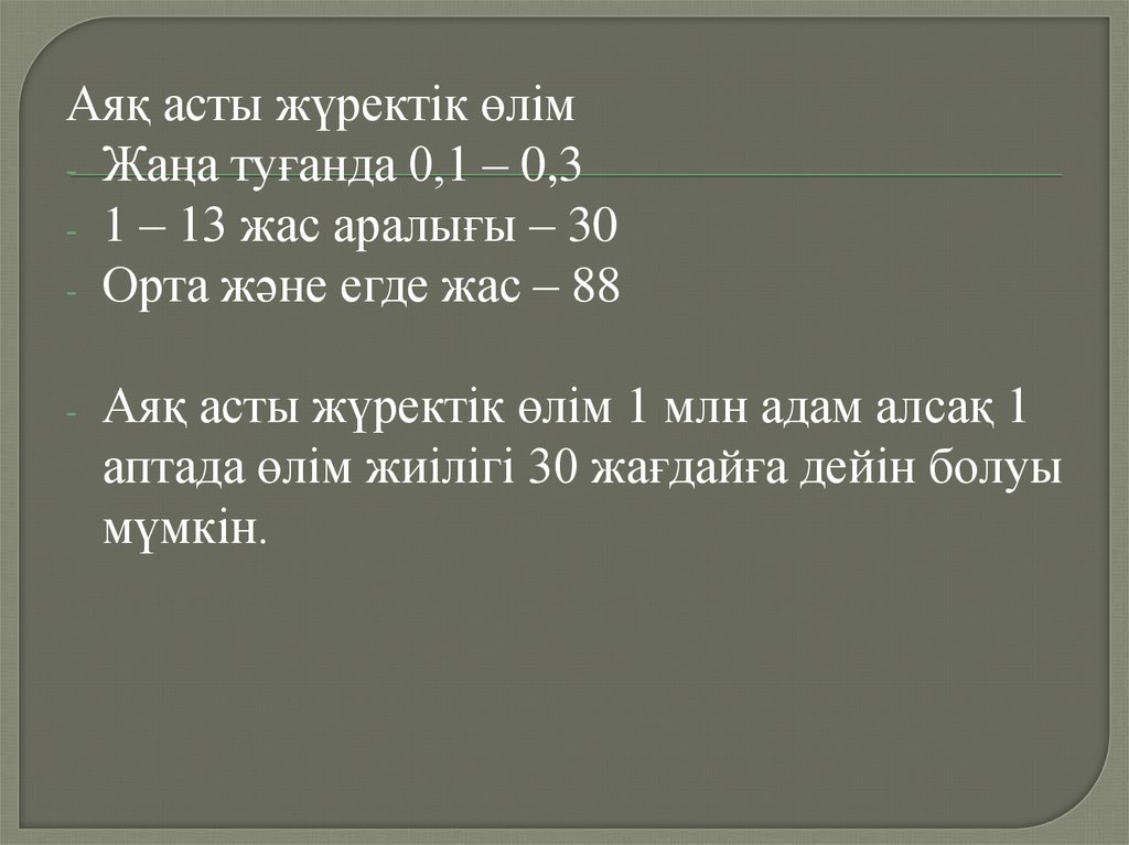 Аяқ асты жүректік өлім 1 млн адам алсақ 1