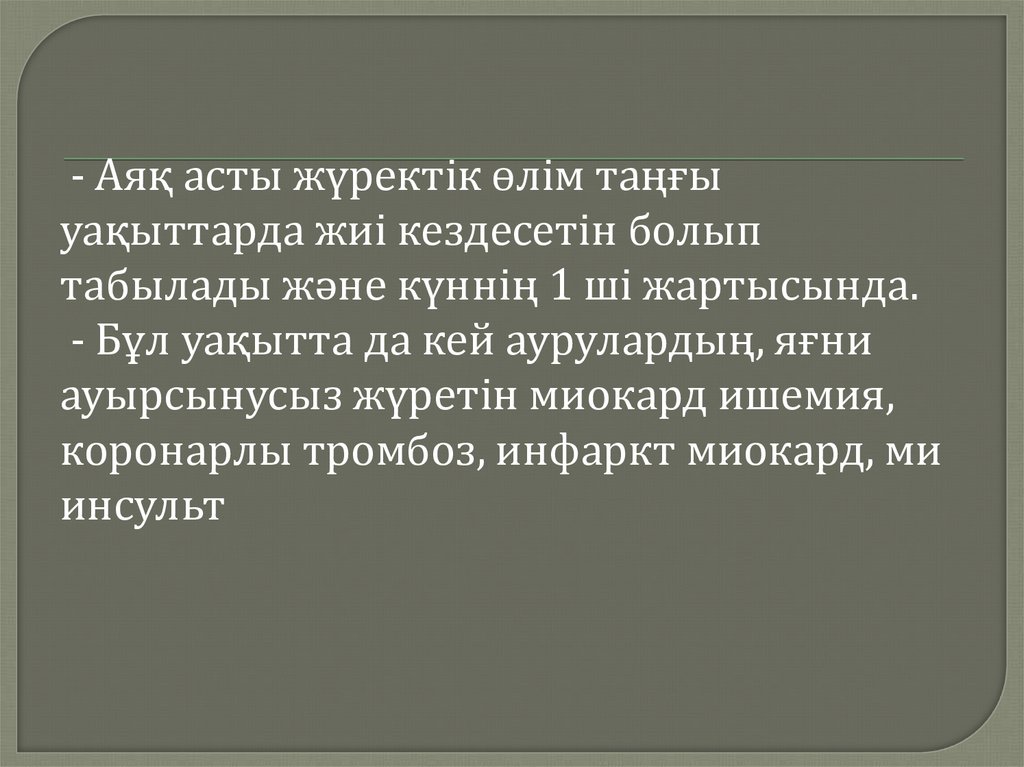 - Аяқ асты жүректік өлім таңғыуақыттарда жиі кездесетін болып