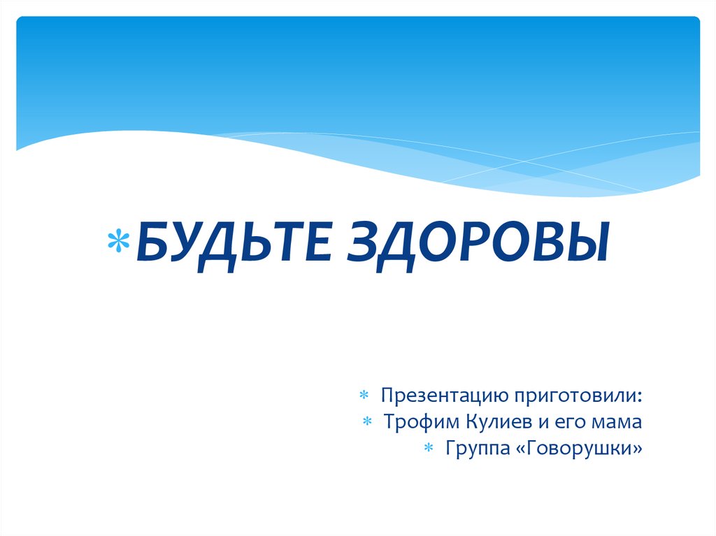 БУДЬТЕ ЗДОРОВЫПрезентацию приготовили: