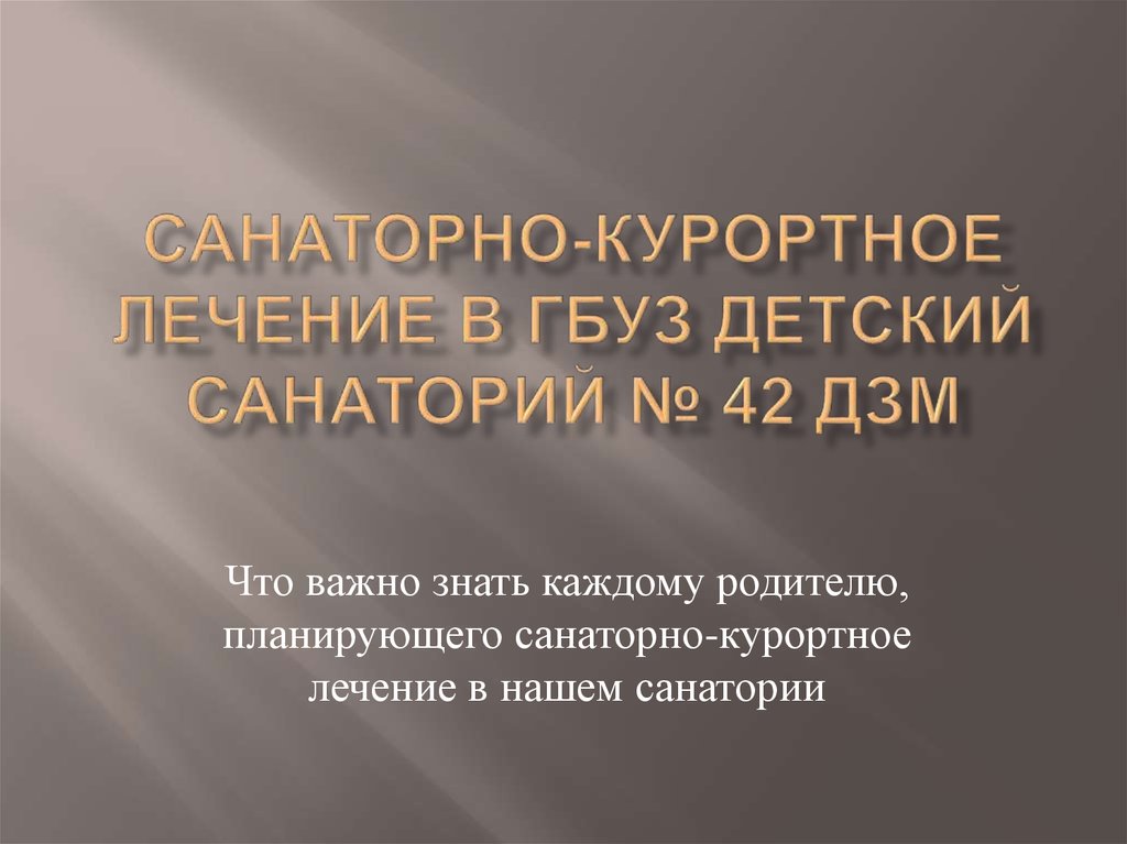 1. Санаторно-курортное лечение в ГБУЗ Детский санаторий № 42 ДЗМ