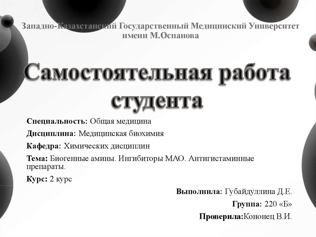 Тема: Биогенные амины. Ингибиторы МАО. Антигистаминные