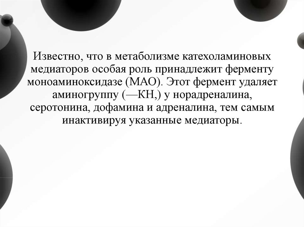 Известно, что в метаболизме катехоламиновыхмедиаторов особая роль принадлежит ферменту