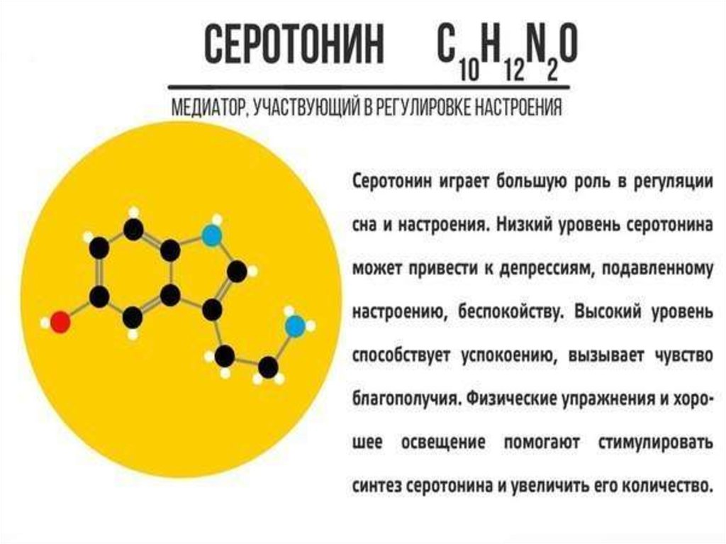 серотонина, дофамина и адреналина, тем самым