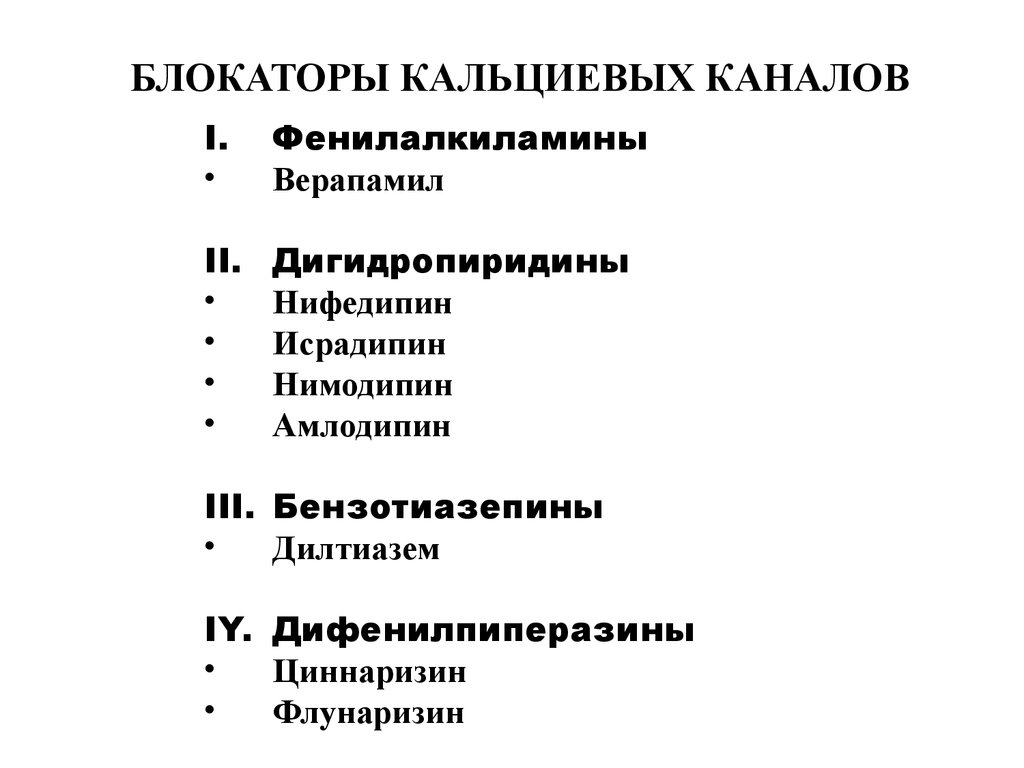 БЛОКАТОРЫ КАЛЬЦИЕВЫХ КАНАЛОВI.