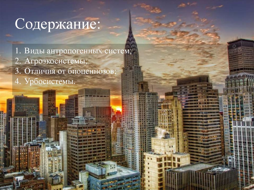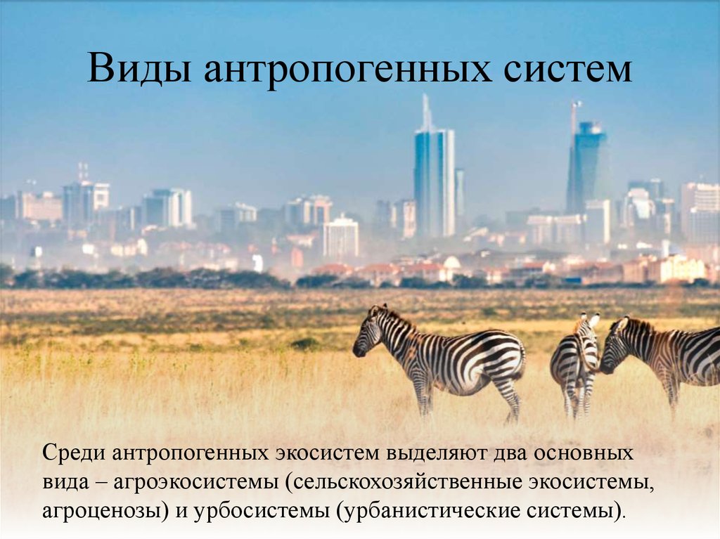 Среди антропогенных экосистем выделяют два основныхвида – агроэкосистемы (сельскохозяйственные экосистемы,