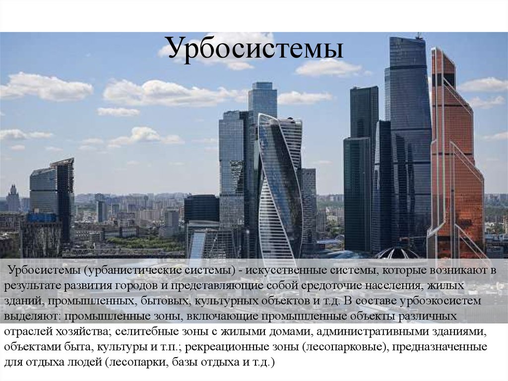 Урбосистемы (урбанистические системы) - искусственные системы, которые возникают врезультате развития городов и представляющие собой средоточие населения, жилых