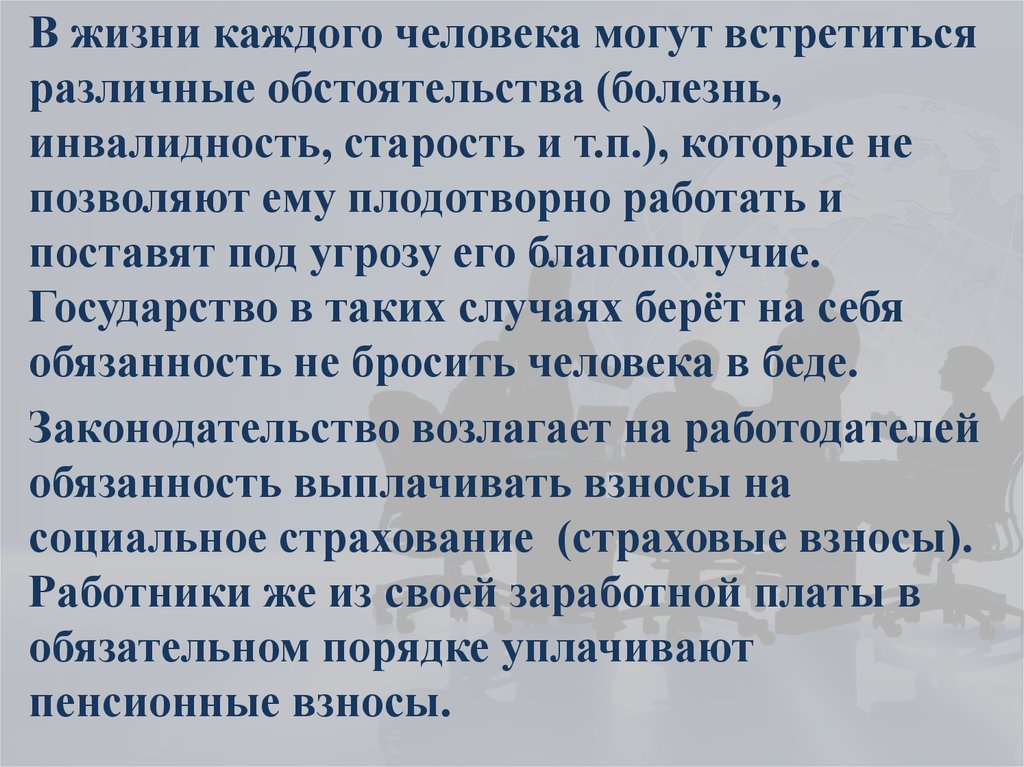 инвалидность, старость и т.п.), которые не