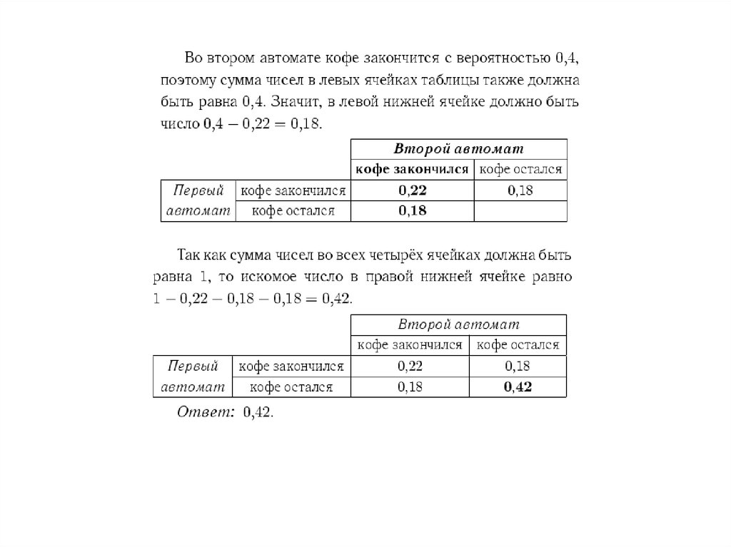 кофе закончится в обоих автоматах, равна 0,22. Найдите вероятность того, что к