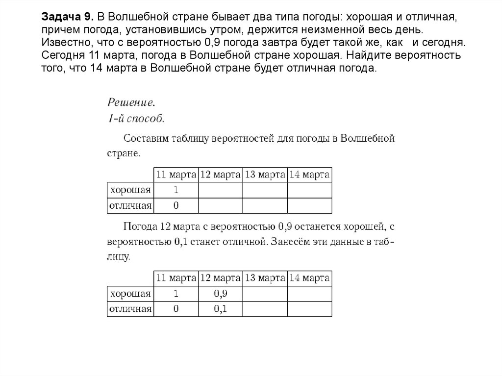 Задача 9. В Волшебной стране бывает два типа погоды: хорошая и отличная,причем погода, установившись утром, держится неизменной весь день.