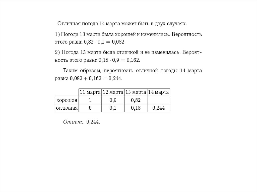 Известно, что с вероятностью 0,9 погода завтра будет такой же, как и сегодня.