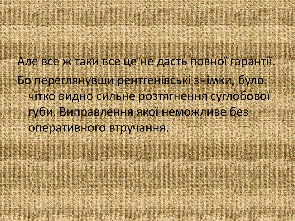 Але все ж таки все це не дасть повної гарантії.Бо переглянувши рентгенівські знімки, було