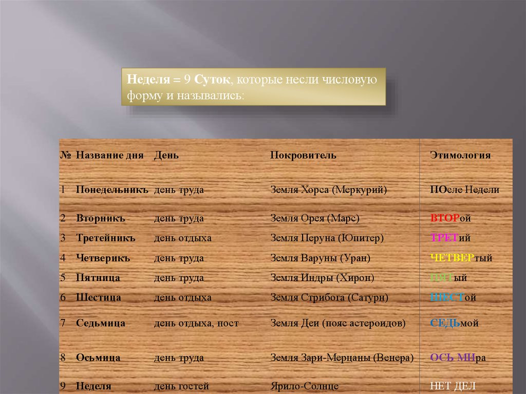 Неделя = 9 Суток, которые несли числовуюформу и назывались: