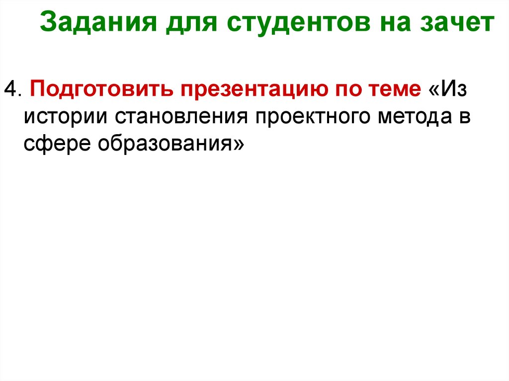 4. Подготовить презентацию по теме «Изистории становления проектного метода в