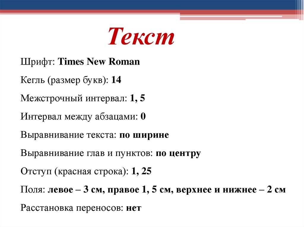Поля: левое – 3 см, правое 1, 5 см, верхнее и нижнее – 2 см