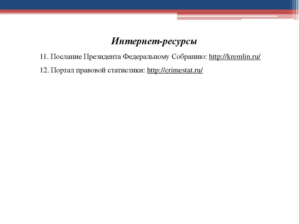 Интернет-ресурсы11. Послание Президента Федеральному Собранию: http://kremlin.ru/