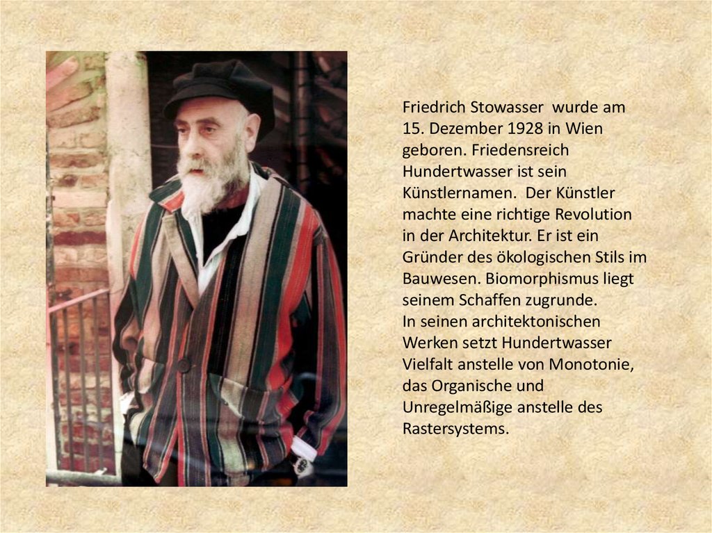 Friedrich Stowasser wurde am15. Dezember 1928 in Wien