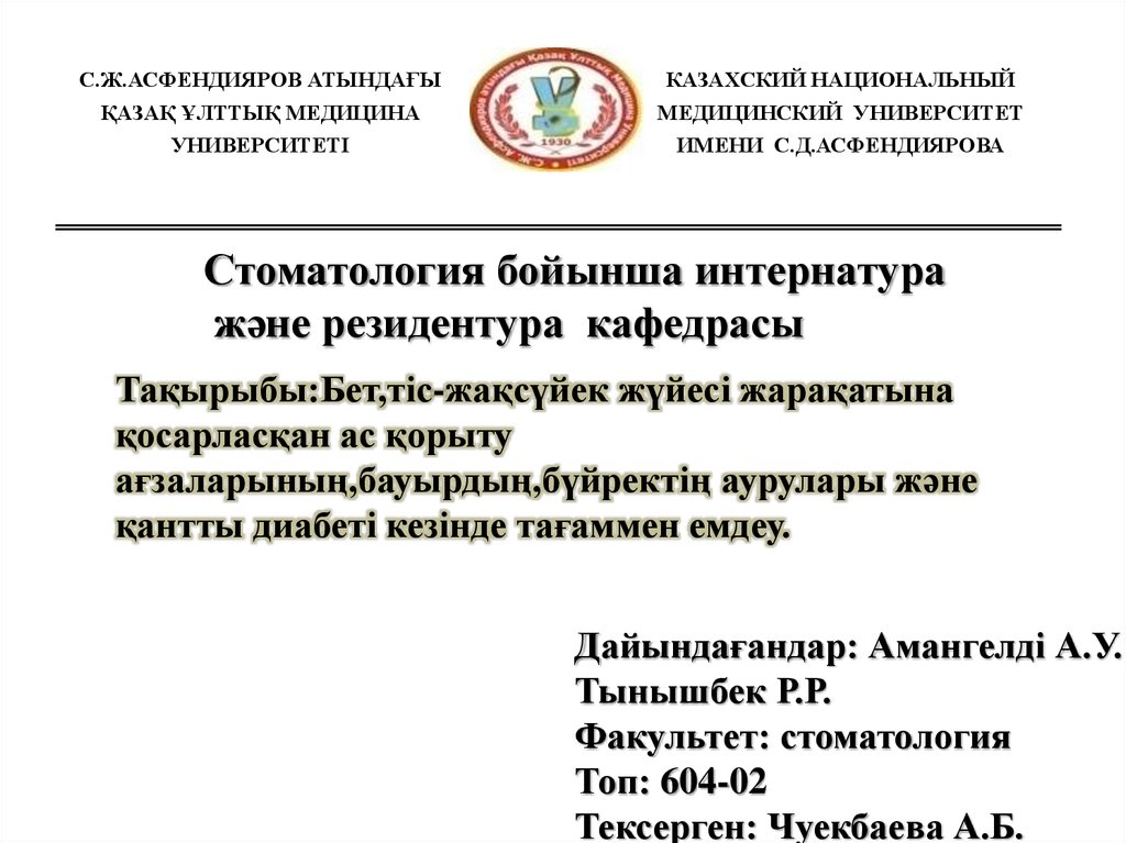 С.Ж.АСФЕНДИЯРОВ АТЫНДАҒЫҚАЗАҚ ҰЛТТЫҚ МЕДИЦИНА