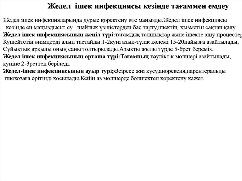 Жедел ішек инфекциясының орташа түрі:Тағамның тәуліктік мөлшері азайтылады,