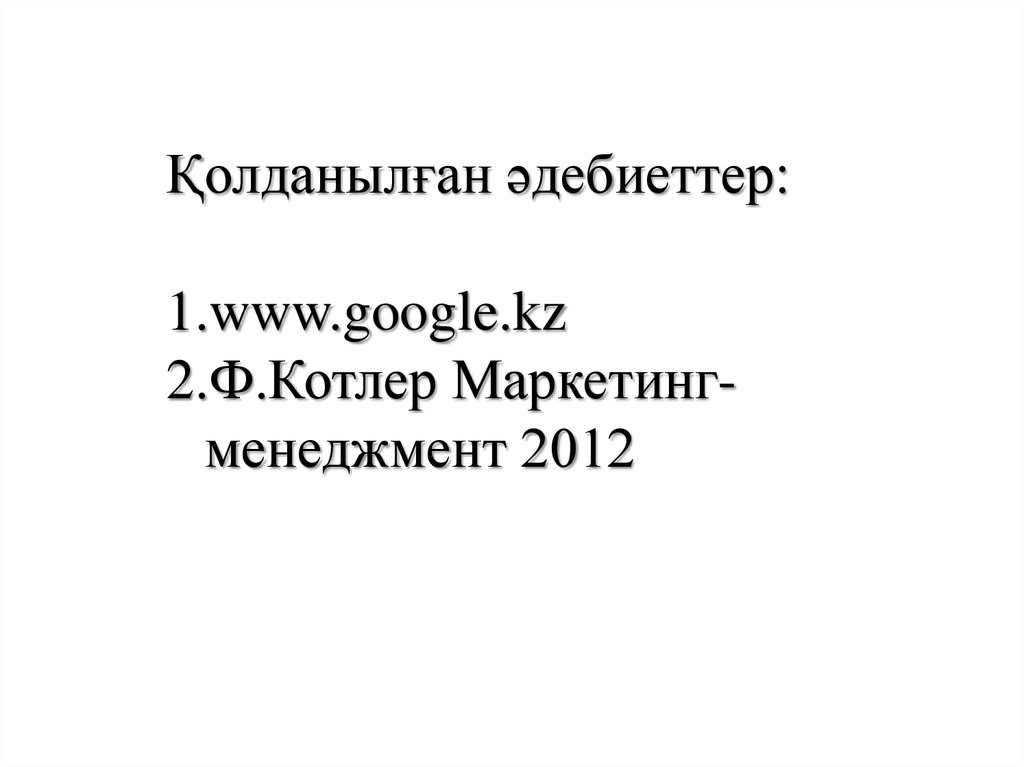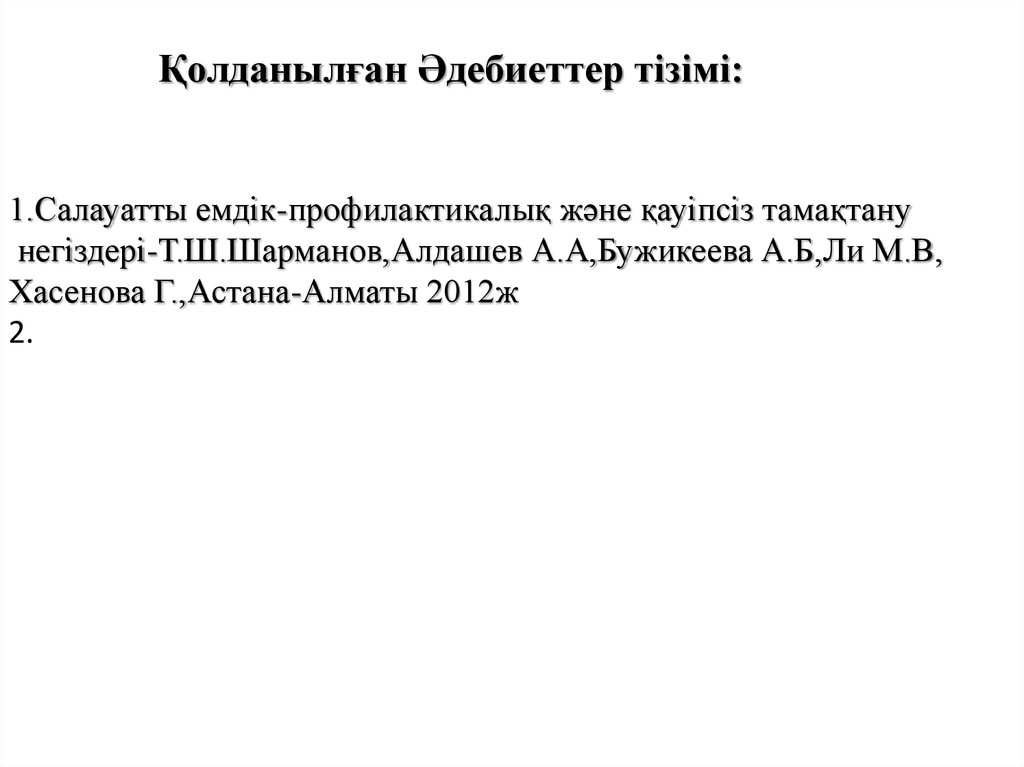 Қолданылған Әдебиеттер тізімі:1.Салауатты емдік-профилактикалық және қауіпсіз тамақтану