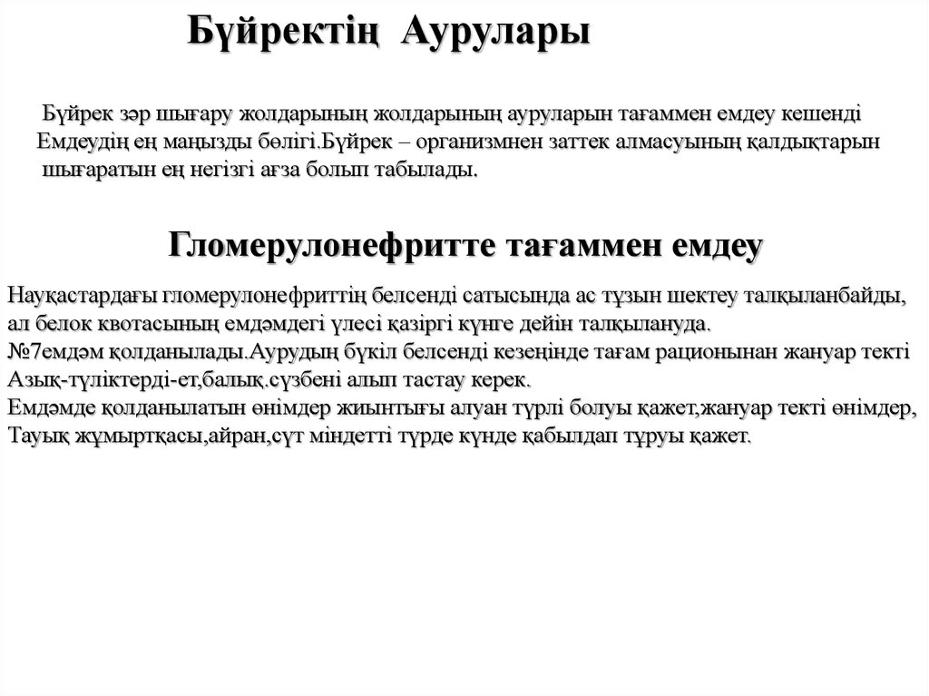 Бүйректің АуруларыБүйрек зәр шығару жолдарының жолдарының ауруларын тағаммен емдеу кешенді