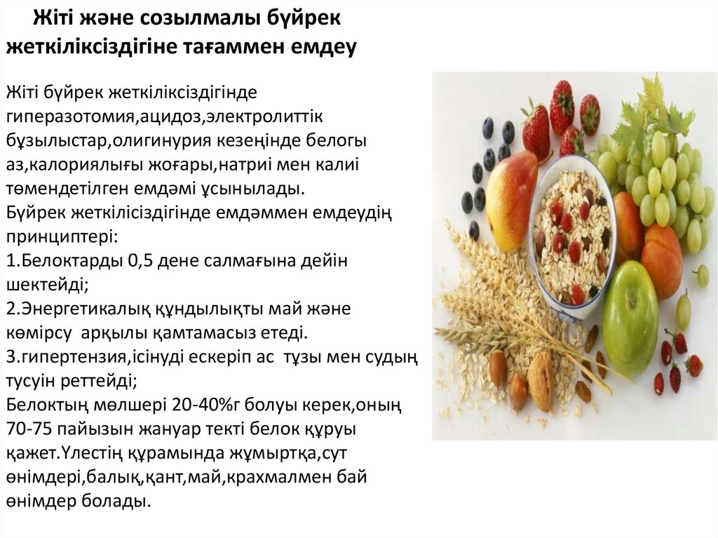 Жіті және созылмалы бүйрекжеткіліксіздігіне тағаммен емдеу