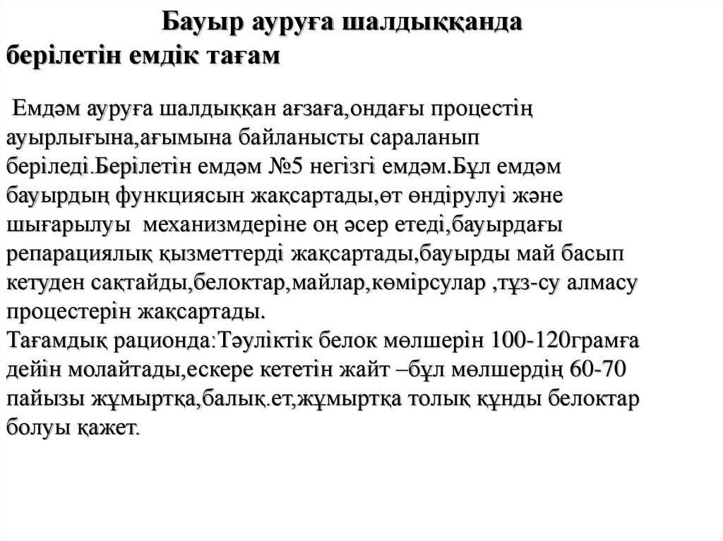 Бауыр ауруға шалдыққандаберілетін емдік тағам