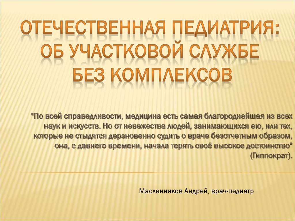 Отечественная педиатрия: об участковой службе без комплексов