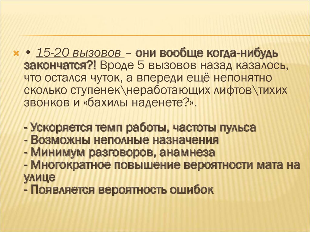• 15-20 вызовов – они вообще когда-нибудьзакончатся?! Вроде 5 вызовов назад казалось,