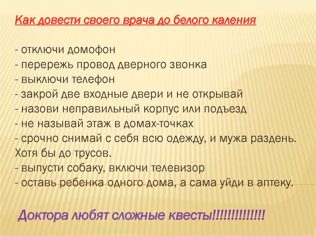 Доктора любят сложные квесты!!!!!!!!!!!!!!