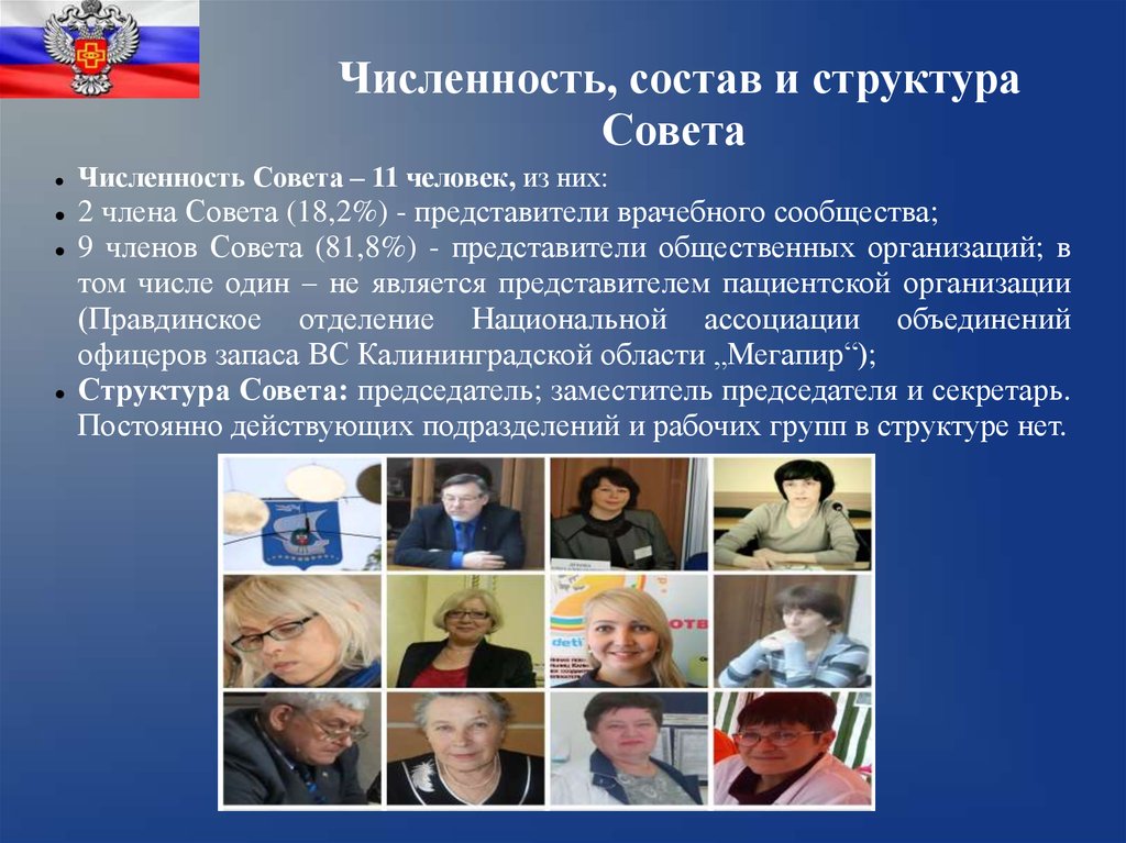 Численность Совета – 11 человек, из них: