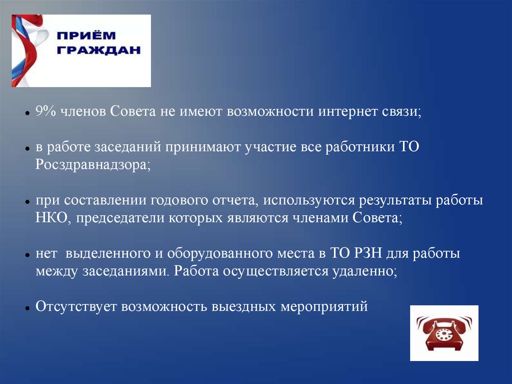 4. нет помещения для приема граждан членами Совета;