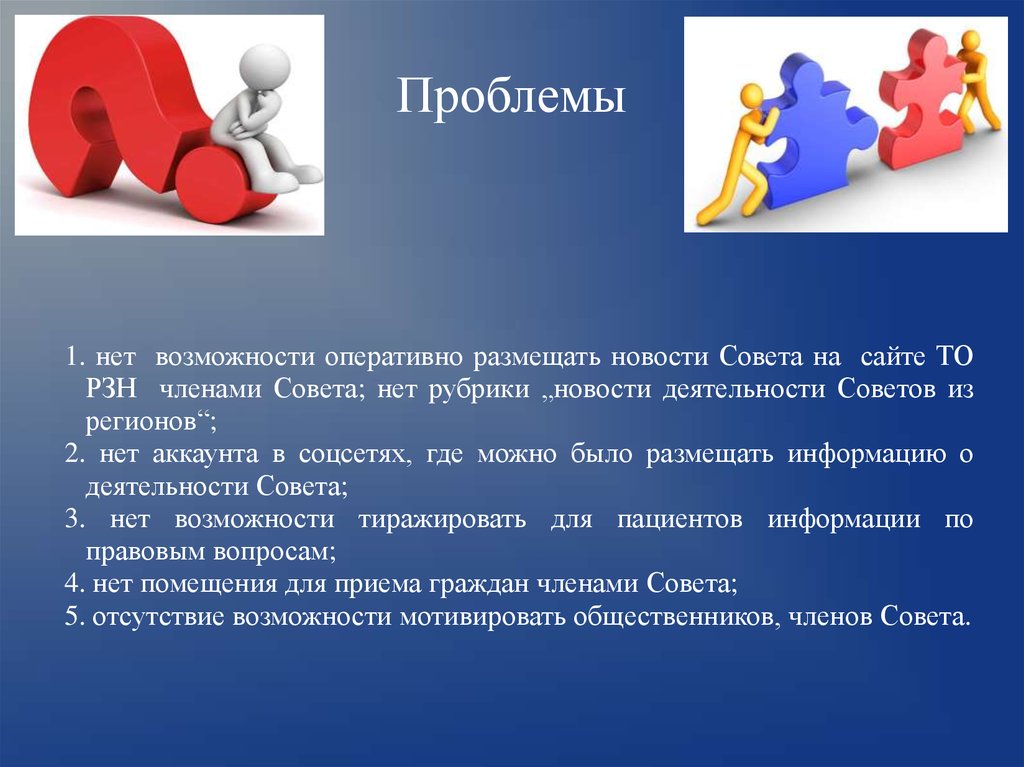 Проблемы1. нет возможности оперативно размещать новости Совета на сайте ТО