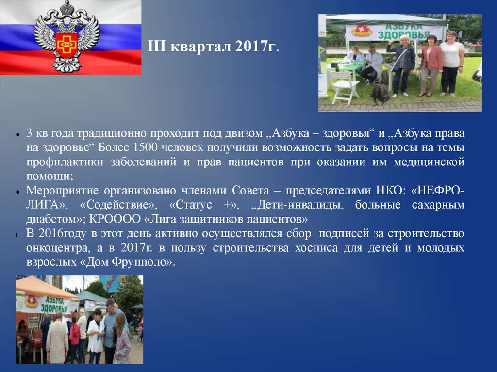 работы поликлиник; 1- „Здоровые почки“; 1- проблемы лекарственного