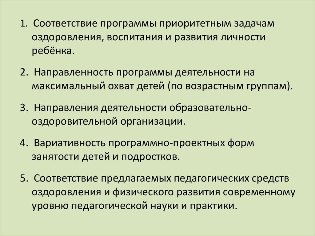 1. Соответствие программы приоритетным задачамоздоровления, воспитания и развития личности