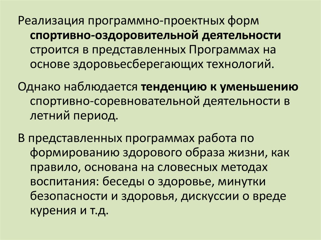 Реализация программно-проектных формспортивно-оздоровительной деятельности