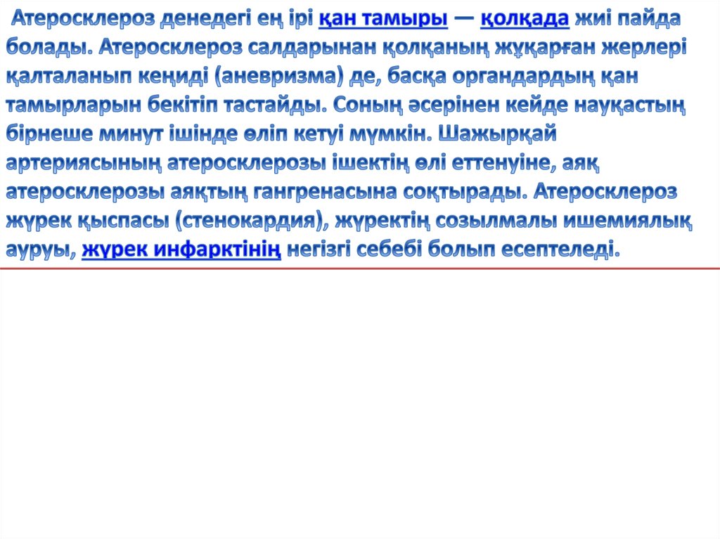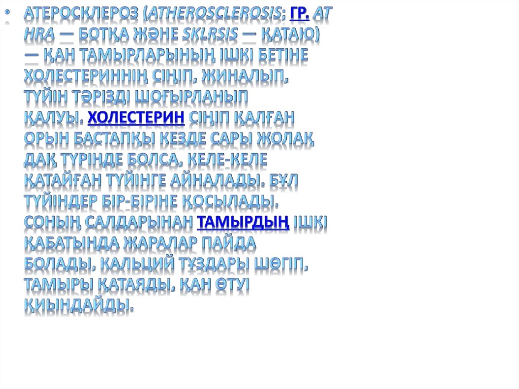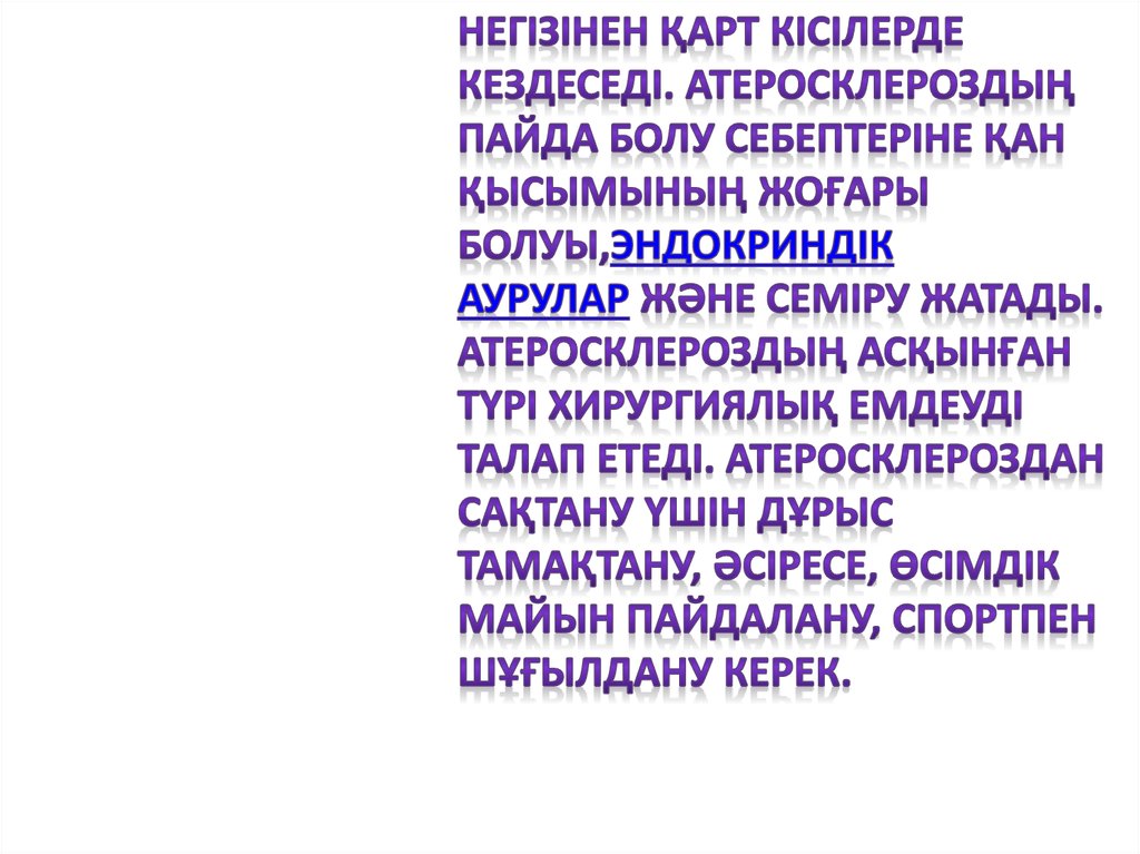 Атеросклероз. Этиологиясы. Клиникалық көрінісі. Медикаменттік ем