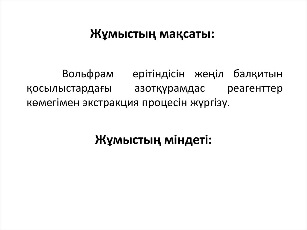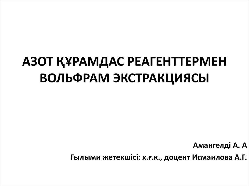 1. АЗОТ ҚҰРАМДАС РЕАГЕНТТЕРМЕН ВОЛЬФРАМ ЭКСТРАКЦИЯСЫ