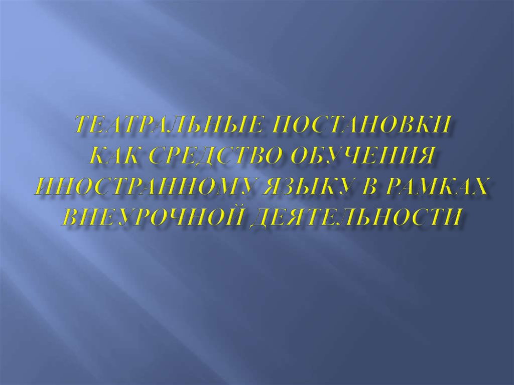 1. Театральные постановки как средство обучения иностранному языку в рамках внеурочной деятельности