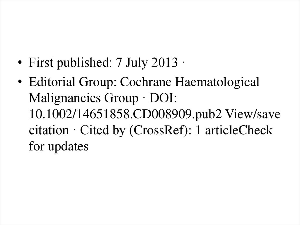 • First published: 7 July 2013 ·• Editorial Group: Cochrane Haematological