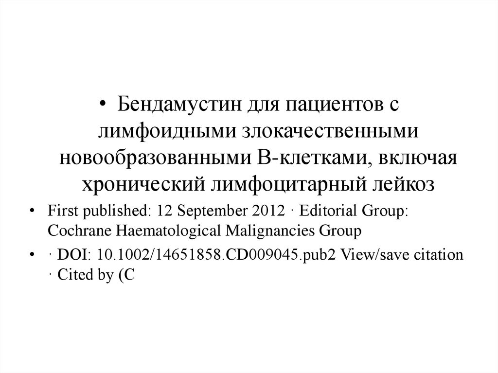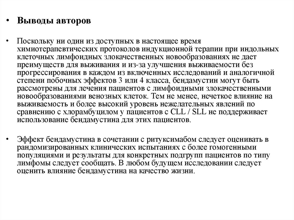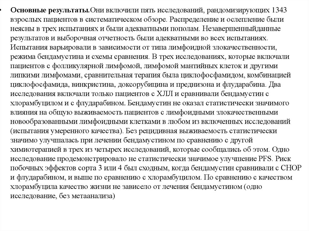 хлорамбуцилом и с флударабином. Бендамустин не оказал статистически значимого