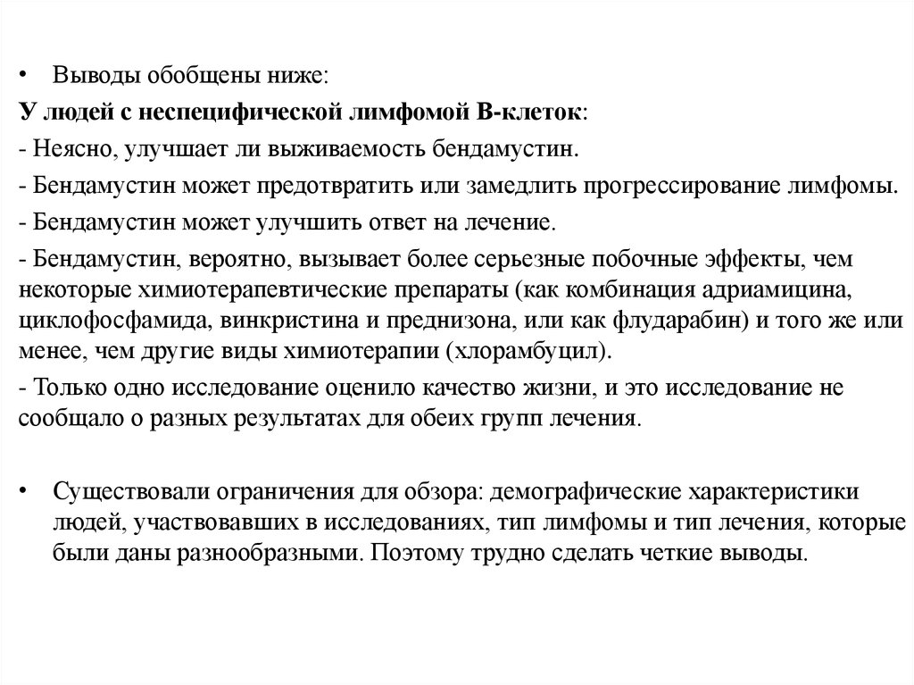 бендамустина по сравнению с другими режимами химиотерапии у этих
