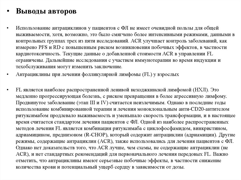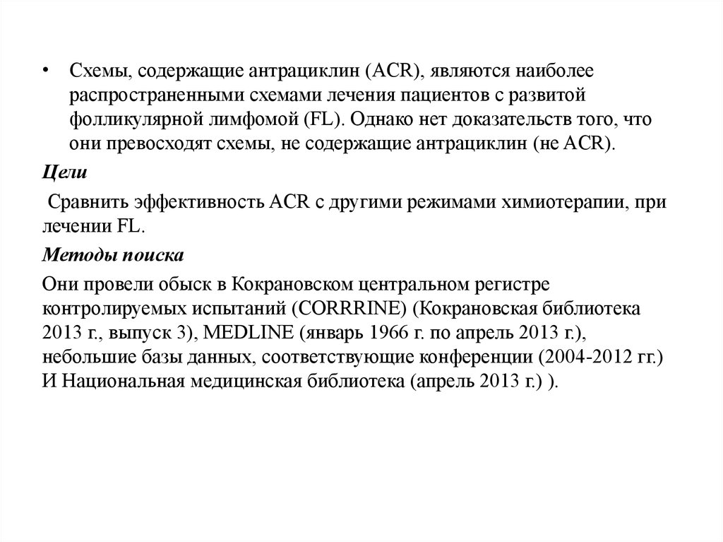 режимы, содержащие антрациклин (ACR), также использовались для лечения пациентов с ФЛ.