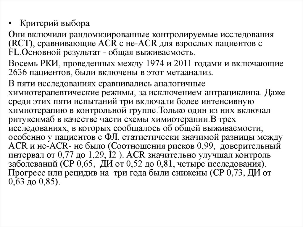 • Критерий выбораОни включили рандомизированные контролируемые исследования